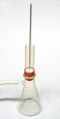 1. Connect the filtering flask to vacuum source and fill the solvent reservoir with cleaning solvent.